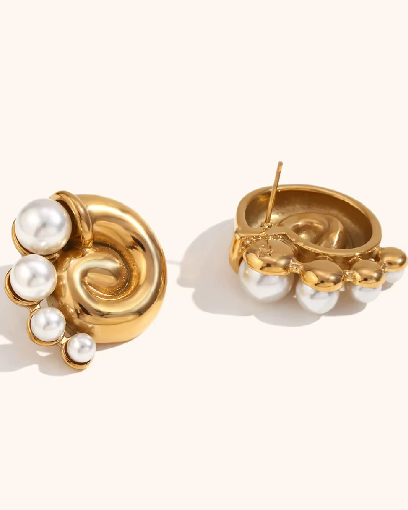 Brinco Dourado Médio Concha com Pérolas Berbigão