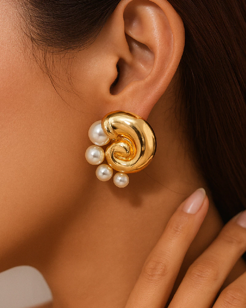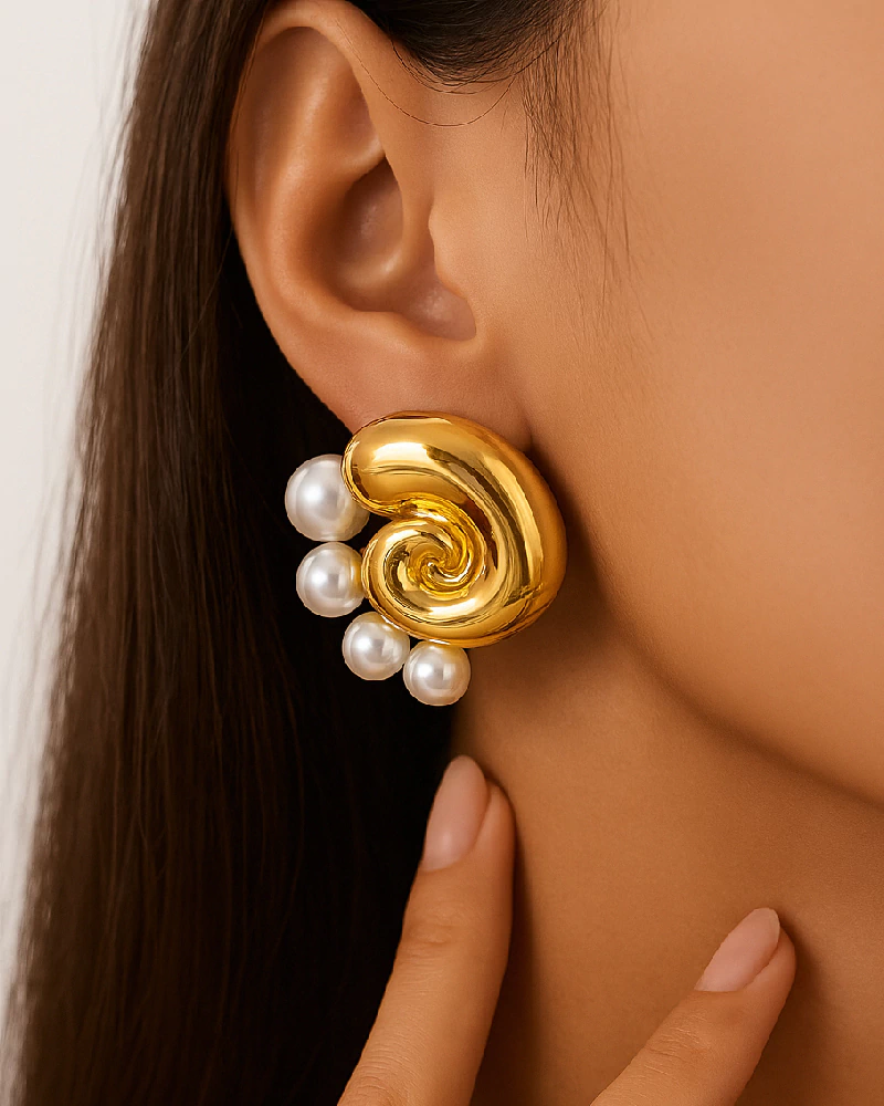 Brinco sofisticado e versátil com design inspirado em conchas marinhas. Apresenta estrutura em metal dourado e aplicação de pérolas simuladas que proporcionam um visual elegante e atemporal. O modelo "Berbigão" é ideal para composições modernas e delicadas, seja em ocasiões casuais ou para realçar looks mais elaborados. Com peso leve e tamanho médio, une conforto e estilo com muita classe.